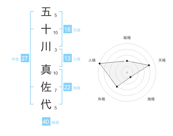 五十川 真佐代さんを姓名の画数から五運を鑑定