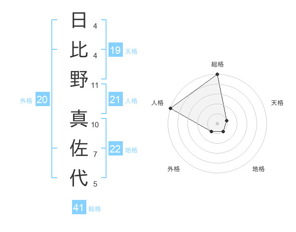 日比野 真佐代さんを姓名の画数から五運を鑑定