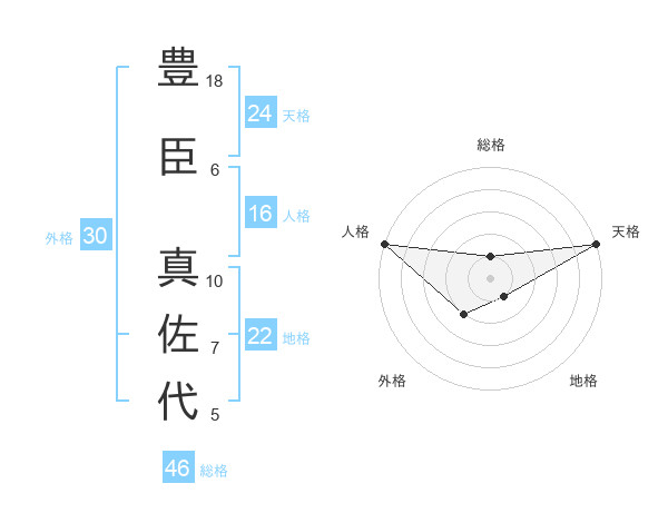 豊臣 真佐代さんを姓名の画数から五運を鑑定