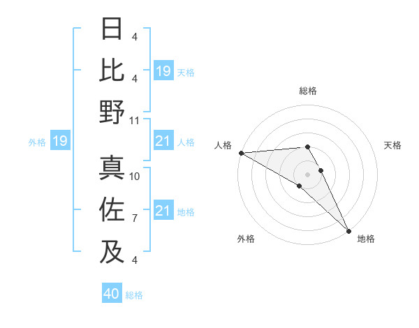 日比野 真佐及さんの人格は21画の5点!
