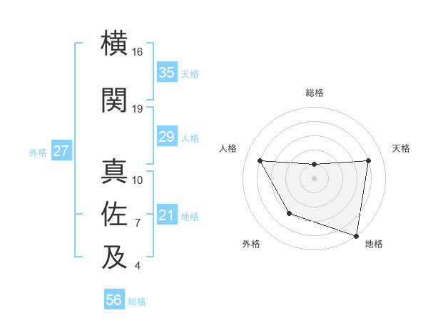 横関 真佐及さんの天格は35画の4点!