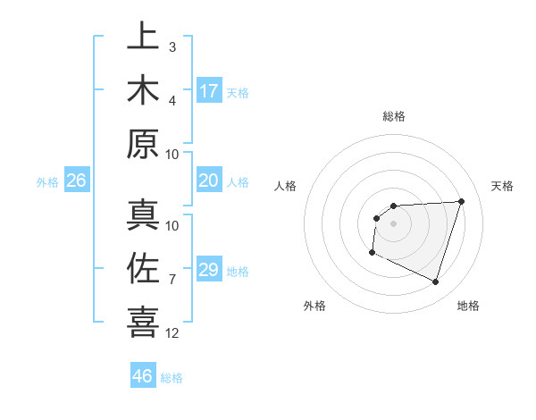 上木原 真佐喜さんを姓名の画数から五運を鑑定