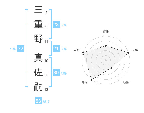 三重野 真佐嗣さんの総格は53画の3点!