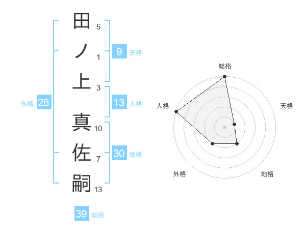 田ノ上 真佐嗣さんの総格は39画の5点!