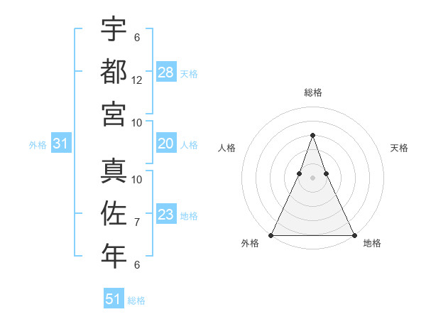 宇都宮 真佐年さんの外格は31画の5点!