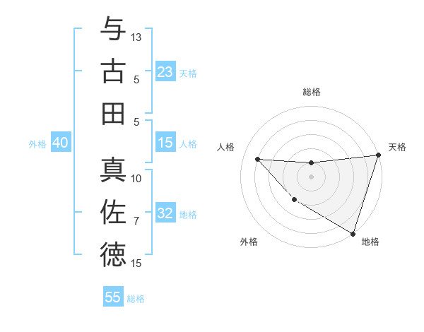 与古田 真佐徳さんの天格は23画の5点!