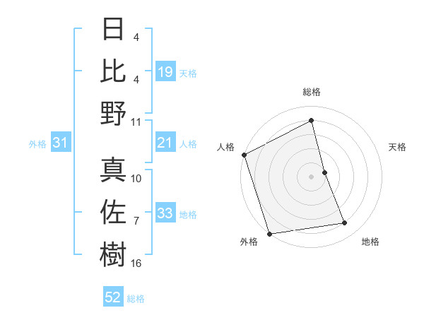 日比野 真佐樹さんの外格は31画の5点!