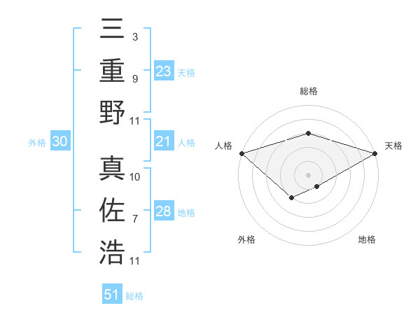 三重野 真佐浩さんを姓名の画数から五運を鑑定