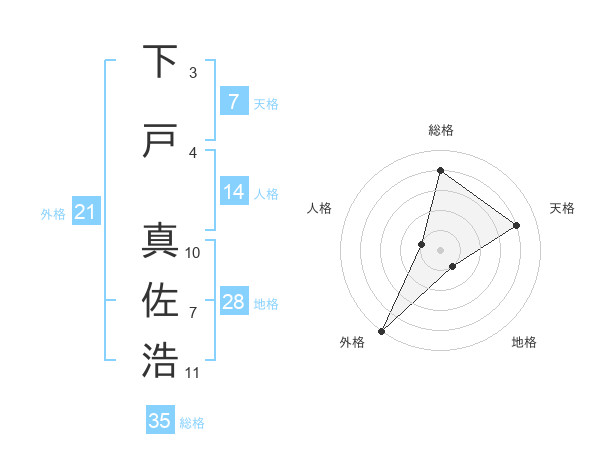 下戸 真佐浩さんを姓名の画数から五運を鑑定
