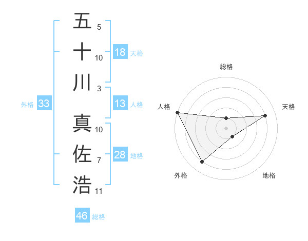 五十川 真佐浩さんを姓名の画数から五運を鑑定
