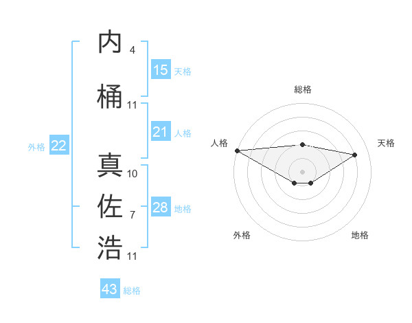 内桶 真佐浩さんを姓名の画数から五運を鑑定