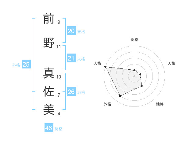 前野 真佐美さんを姓名の画数から五運を鑑定