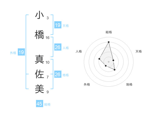 小橋 真佐美さんの総格は45画の4点!