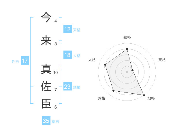 今来 真佐臣さんを姓名の画数から五運を鑑定