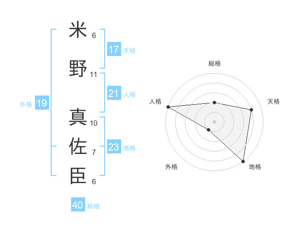 米野 真佐臣さんを姓名の画数から五運を鑑定