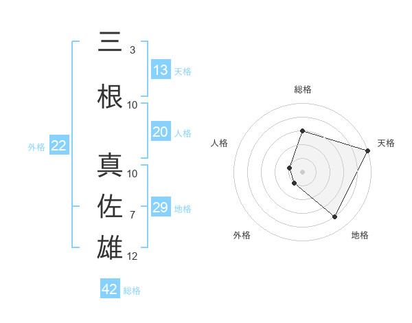 三根 真佐雄さんを姓名の画数から五運を鑑定