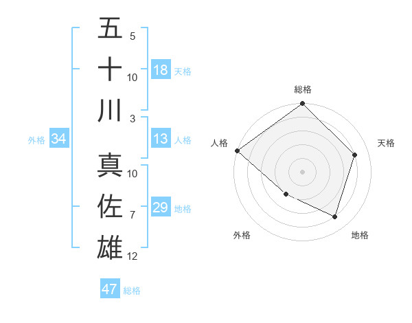 五十川 真佐雄さんの総格は47画の5点!