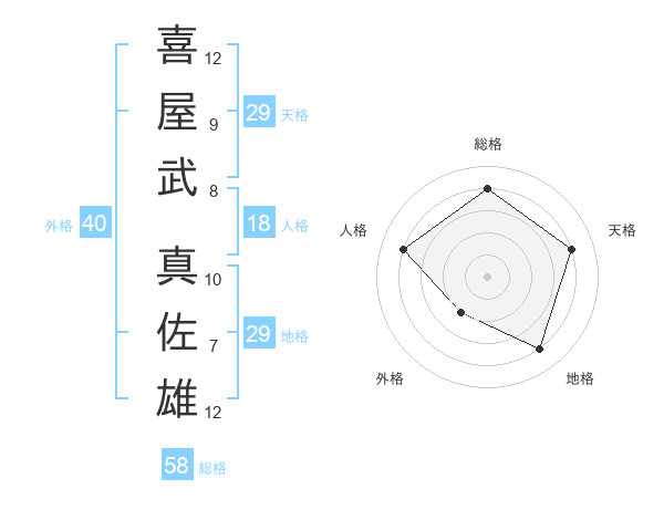 喜屋武 真佐雄さんを姓名の画数から五運を鑑定