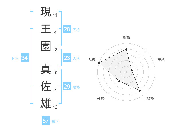 現王園 真佐雄さんを姓名の画数から五運を鑑定