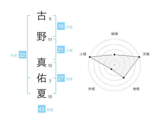 古野 真佑夏さんを姓名の画数から五運を鑑定