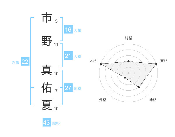 市野 真佑夏さんを姓名の画数から五運を鑑定