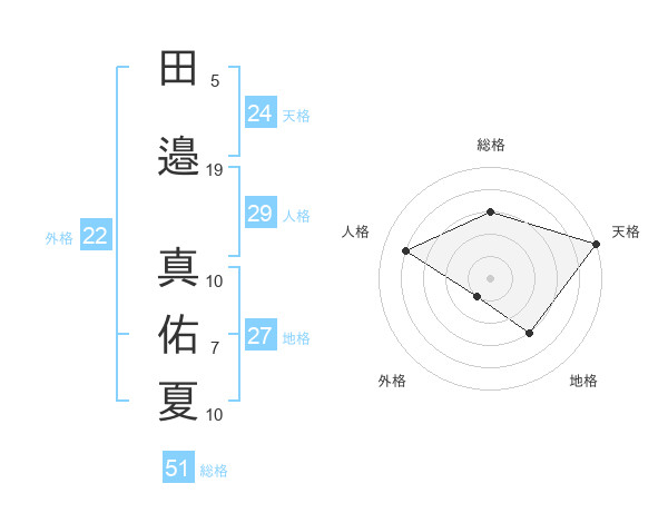 田邉 真佑夏さんを姓名の画数から五運を鑑定