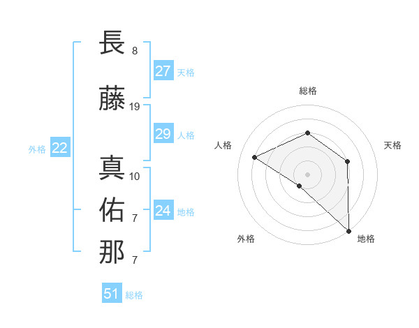 長藤 真佑那さんの総格は51画の3点!