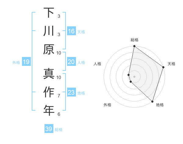下川原 真作年さんを姓名の画数から五運を鑑定