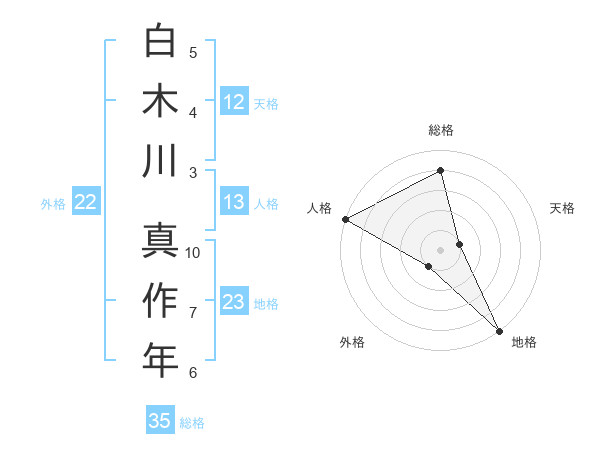 白木川 真作年さんを姓名の画数から五運を鑑定