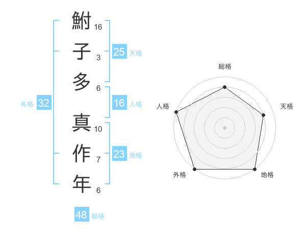 鮒子多 真作年さんを姓名の画数から五運を鑑定