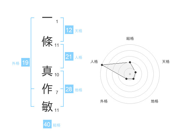一條 真作敏さんの天格は12画の1点!
