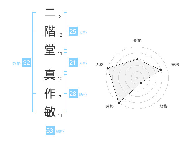 二階堂 真作敏さんの総格は53画の3点!