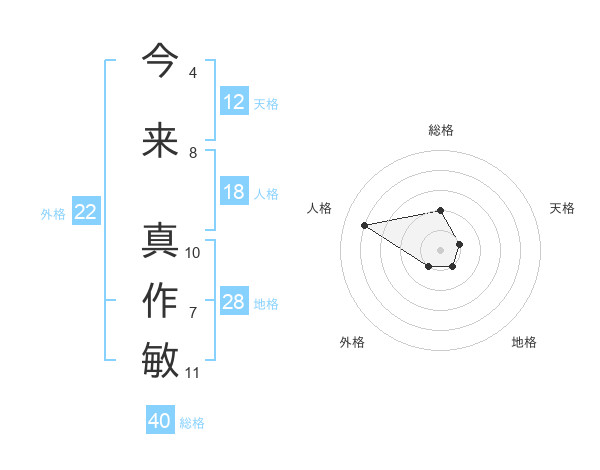 今来 真作敏さんの総格は40画の2点!