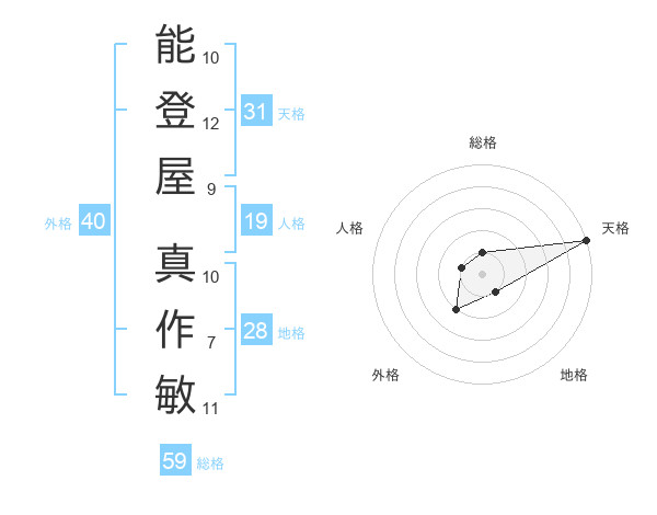 能登屋 真作敏さんを姓名の画数から五運を鑑定
