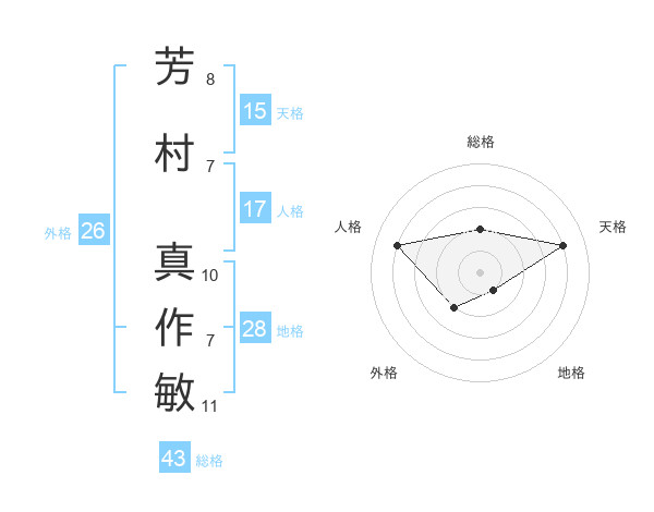 芳村 真作敏さんの総格は43画の2点!