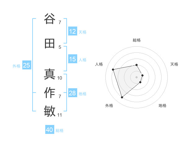 谷田 真作敏さんを姓名の画数から五運を鑑定
