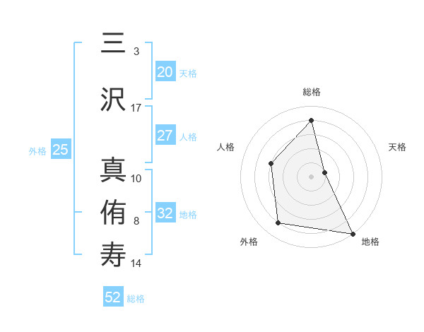 三沢 真侑寿さんの総格は52画の4点!