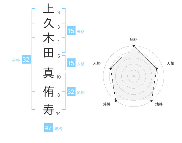 上久木田 真侑寿さんの総格は47画の5点!
