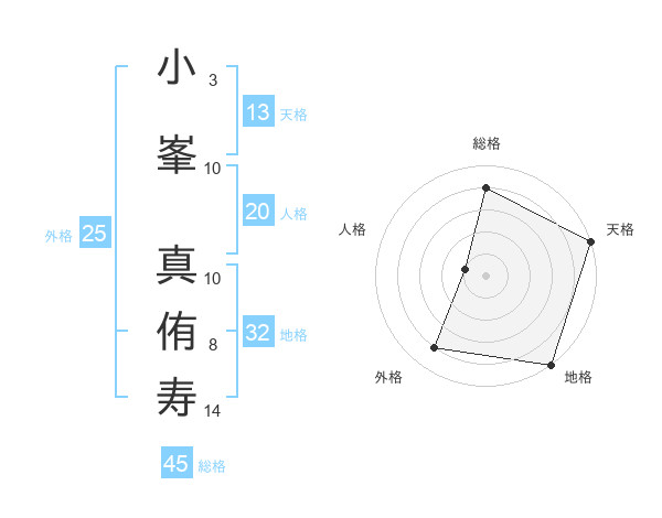 小峯 真侑寿さんの総格は45画の4点!