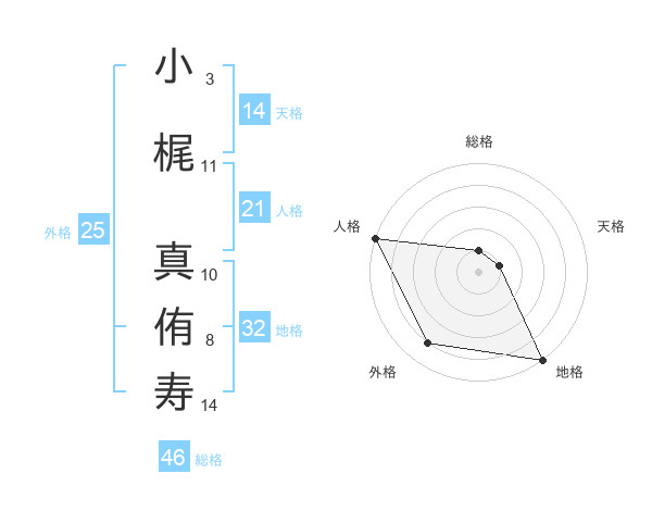 小梶 真侑寿さんの天格は14画の1点!