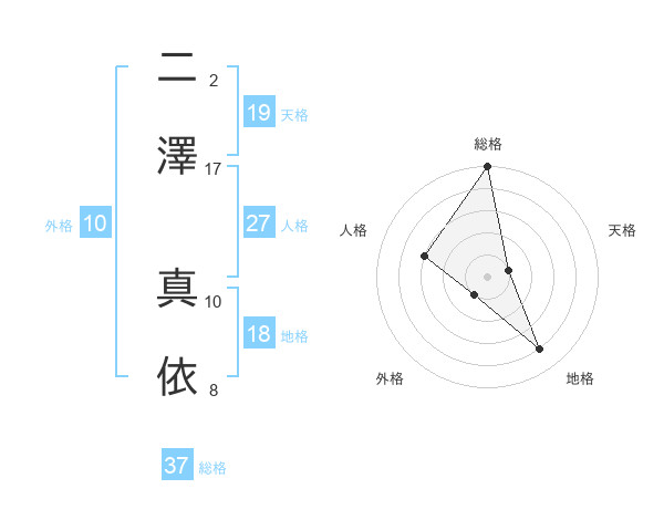 二澤 真依さんの総格は37画の5点!