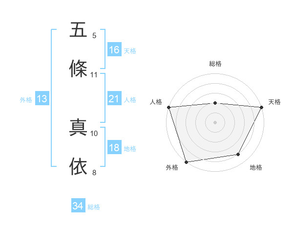 五條 真依さんの外格は13画の5点!