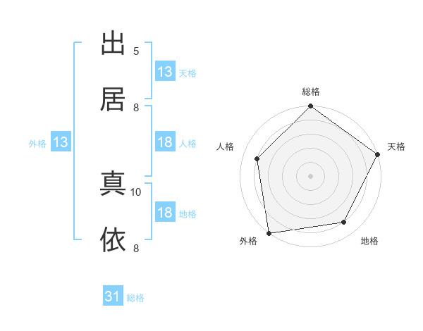 出居 真依さんの外格は13画の5点!