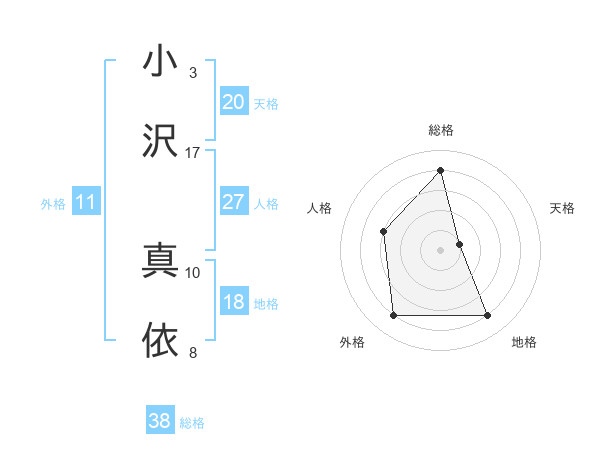 小沢 真依さんの天格は20画の1点!
