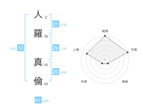 人羅 真倫さんの総格は41画の5点!