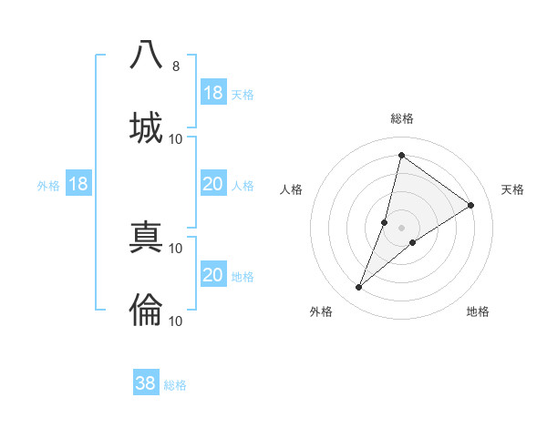 八城 真倫さんの総格は38画の4点!