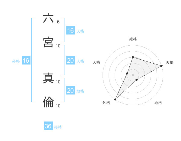 六宮 真倫さんの天格は16画の5点!