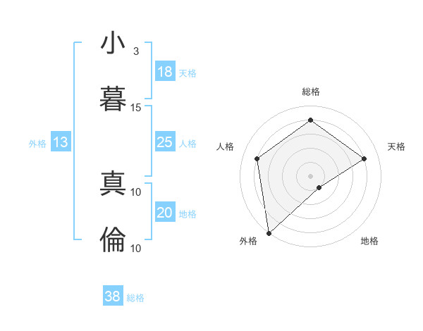 小暮 真倫さんの総格は38画の4点!