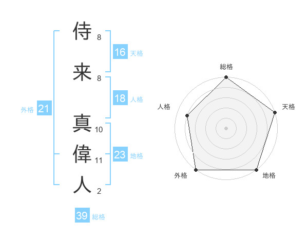 侍来 真偉人さんを姓名の画数から五運を鑑定