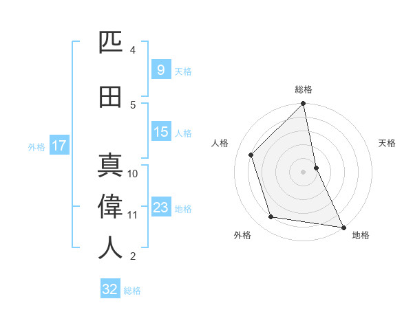 匹田 真偉人さんを姓名の画数から五運を鑑定